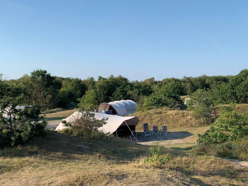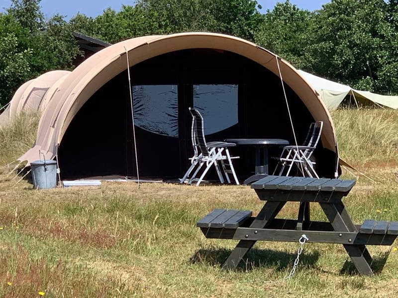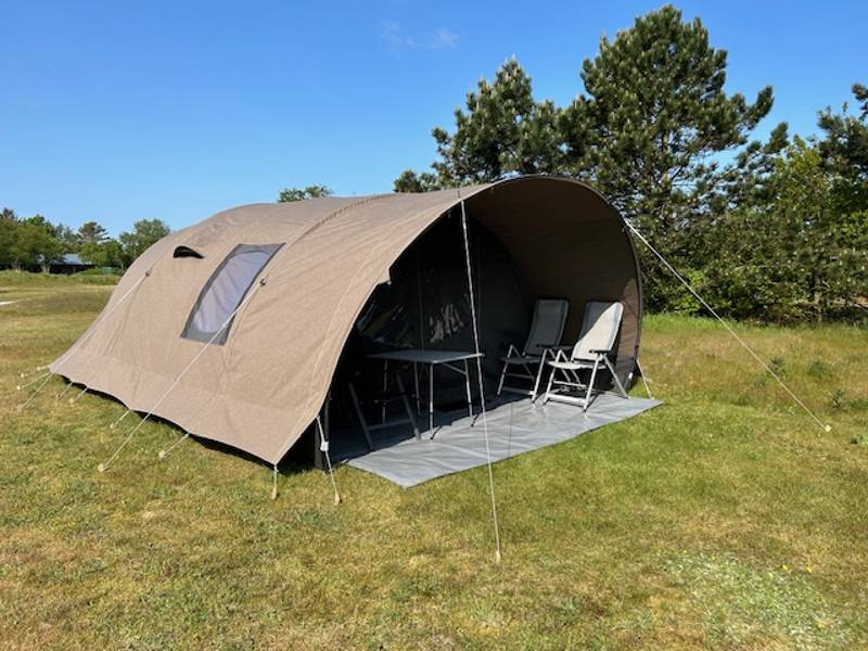 De luxe ingerichte boogtenten van "De Waard" van maar liefst 24 m2 staan garant voor een prettig, veilig en comfortabel verblijf. U heeft een ruim woongedeelte met drie slaapcabines tot uw beschikking, waarin u met maximaal vijf personen kunt slapen. De tenten zijn stormvast en hebben een grote luifel, handig als extra leefruimte, maar ook ideaal om bij zonnige dagen in de schaduw te zitten.